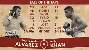 Saúl “Canelo” Álvarez (46-1-1, 32 KOs) vs. Amir “King Khan” Khan (31-3, 19 KOs). Por el título CMB de las 160 libras que ostenta Álvarez.